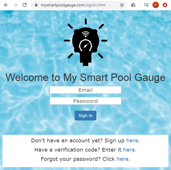 Go to www.MySmartPoolGauge.com and click on the link to create an account. Follow the prompts to sign up and verify your account.