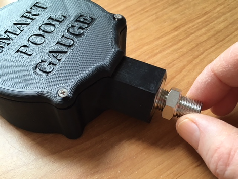 Your Smart Pool Gauge comes with a G1/4" thread but many pool filters use the 1/4" NPT fitting so we have included an adapter with your gauge. Please check the thread specification for your pool filter to determine which thread to use. If your filter uses a 1/4" NPT thread, you can attach the adapter as shown in the picture opposite.